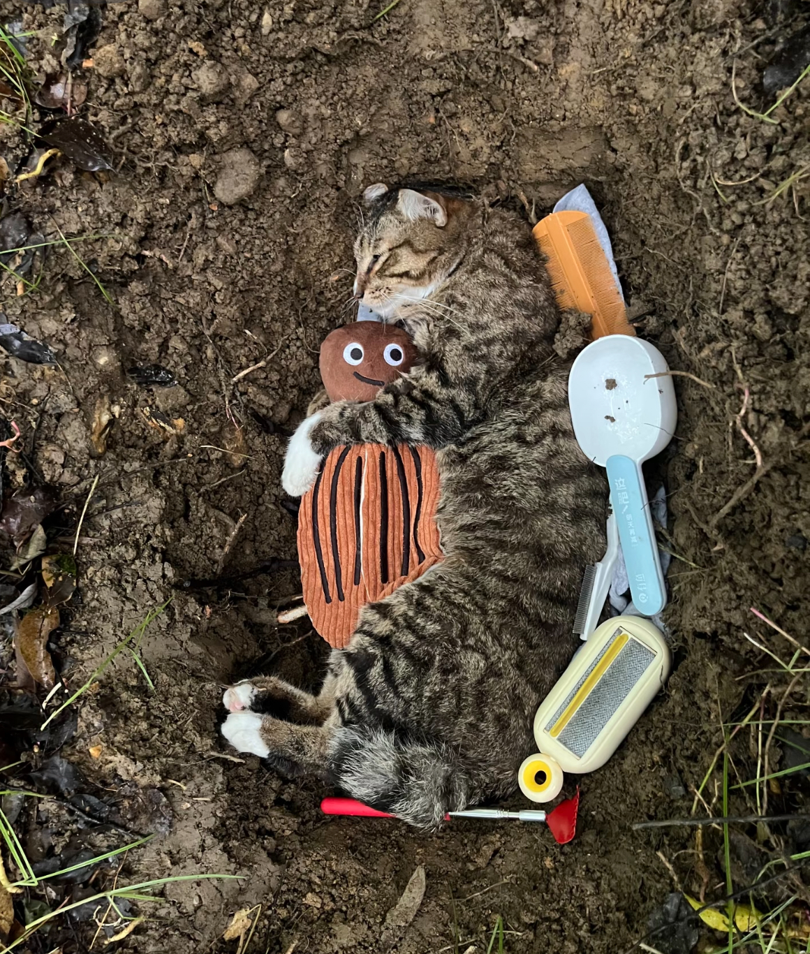 我们找了小区边缘一块偏僻的草地,趁天还没黑,挖了个坑。土有点硬,石头也多,我们轮着挖。猫用一个旧毛毯包着,旁边还放了一只它以前最爱的布老鼠。